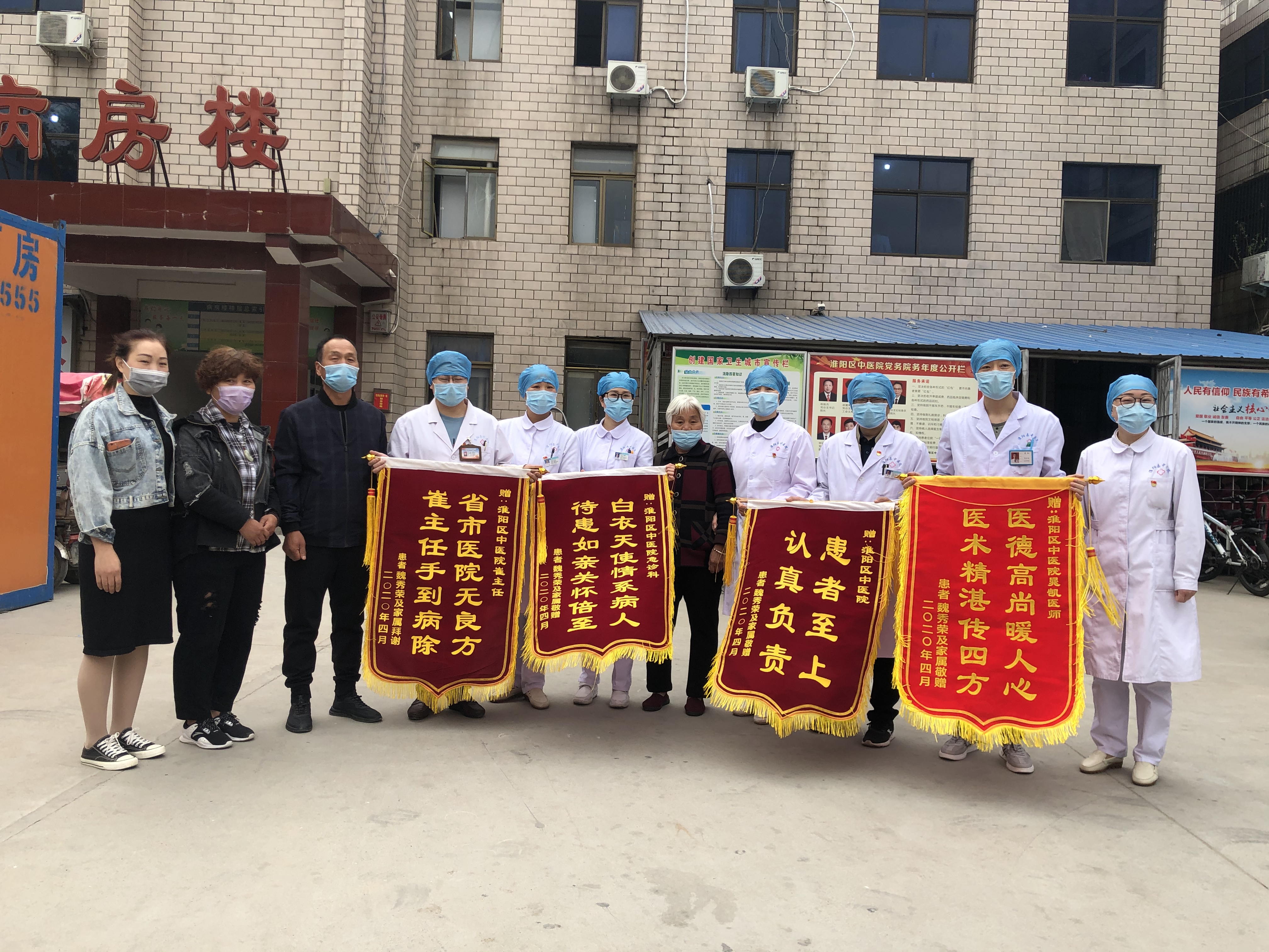 “真是太感謝你們了!技術(shù)和服務(wù)絕對雙一流!”4月27日上午,一名86歲老太太的家屬手捧四面錦旗來到淮陽區(qū)中醫(yī)院,親自將錦旗送到副院長劉永、外科主任崔成品、ICU醫(yī)師晁凱、護士長劉婷婷、急診科護士長李琴手中。患者家屬握著崔主任的手眼含熱淚久久不能松開,“真是沒想到能撿回我那老母親的一條命!多虧了崔主任,多虧了咱們醫(yī)院的全體醫(yī)護人員,在別的醫(yī)院都不給治療了,是你們中醫(yī)院幫我家老太太搶回一命??!”患者家屬的心情久久不能平復(fù),感激之情難以言表。