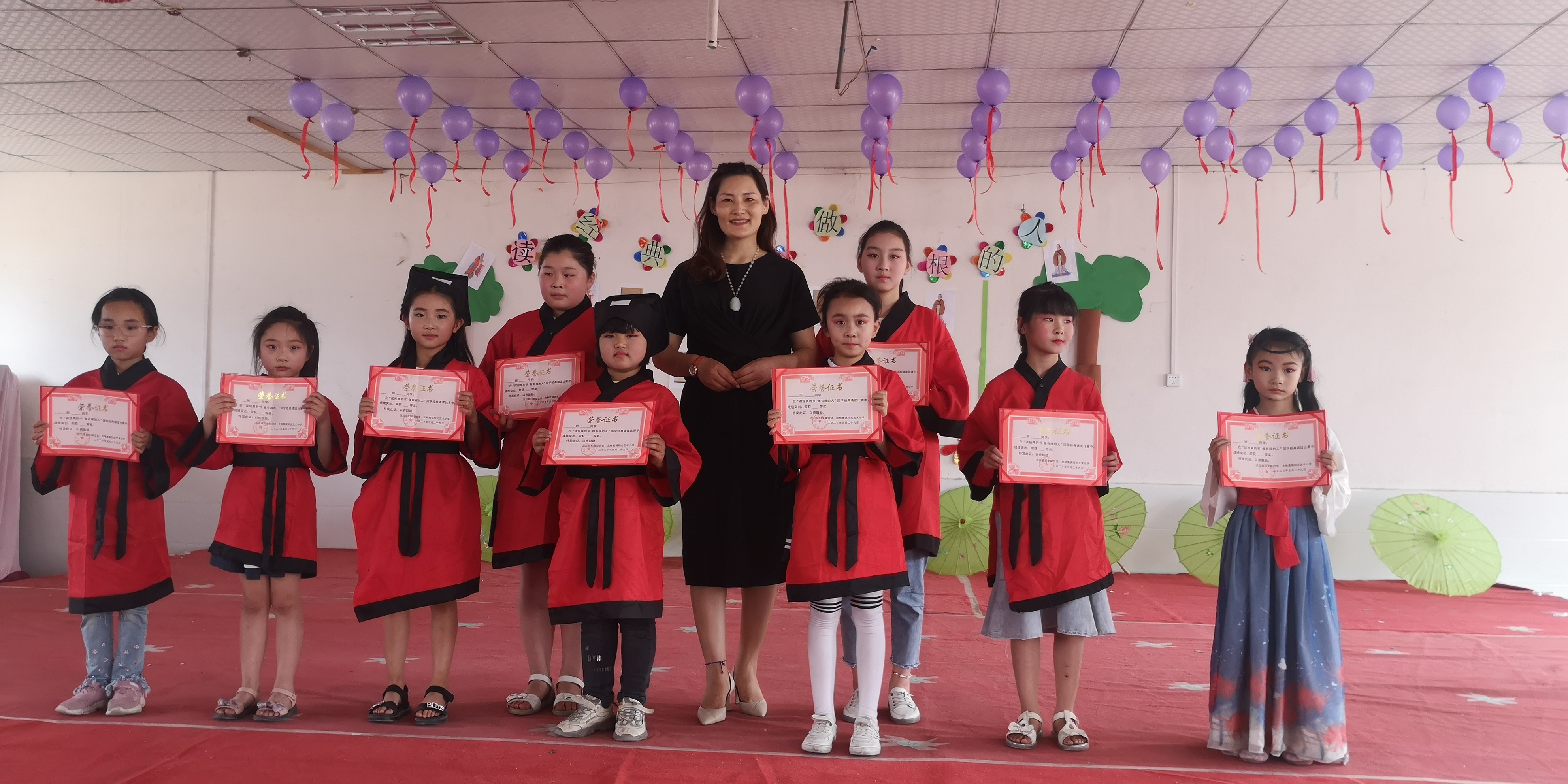 據(jù)悉,此次活動共有一至五年級9個班的學(xué)生參賽。各年級參賽選手選取了極具代表性的作品,形式多樣,氣勢恢宏,他們飽含深情的誦讀了《游子吟》、《弟子規(guī)》、《水調(diào)歌頭》、《詠柳》、《孝經(jīng)》、《我愛你,中國》、《論語十則》、《笠翁對韻》、《少年中國說》等經(jīng)典文章。小選手們個個身穿古裝漢服,神采飛揚,充分展現(xiàn)自我。他們用心演繹經(jīng)典,或慷慨激昂、鏗鏘有力,或低沉婉轉(zhuǎn)、深情吟誦,將對經(jīng)典的熱愛融入作品,將作品的藝術(shù)感染力和舞臺表現(xiàn)力展現(xiàn)得淋漓盡致,作品內(nèi)涵得以充分體現(xiàn)。