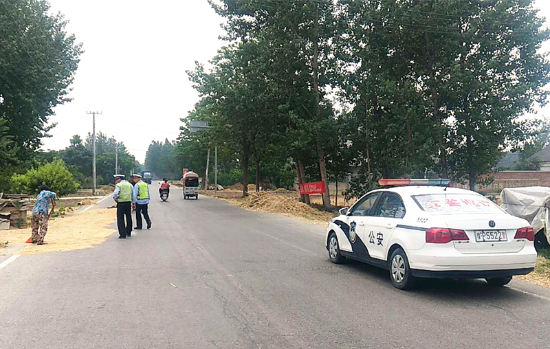 近期正值夏收高峰,公路上打場曬糧現象頻現,極大的影響了車輛的正常通行和交通安全。為教育糾正農民占道曬糧的行為,連日來,鄲城交警采取多項解決農民群眾占道曬糧問題,減少擁堵,預防事故,確保了安全暢通。