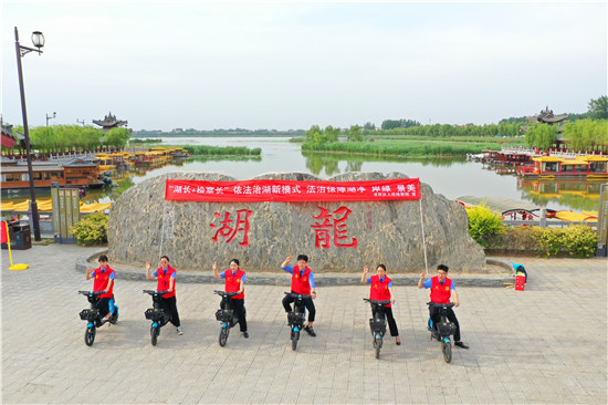 當(dāng)日38度的高溫酷熱擋不住檢察干警守護(hù)淮陽(yáng)河暢、水清、湖凈、岸綠、景美的決心和信心,30名檢察干警、志愿者騎電車圍湖宣傳,為市民進(jìn)行相關(guān)政策的講解,號(hào)召市民熱愛(ài)龍湖,告知群眾及社會(huì)各界人士參與檢察公益保護(hù)的方式和途徑,公開(kāi)聯(lián)系電話,微信公眾號(hào),方便群眾通過(guò)多種渠道提供案件線索。
