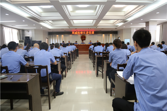 近日,項城市人民檢察院黨組書記、檢察長周威為全院干警講“強化四個意識,推進機關(guān)黨建上水平”專題黨課。