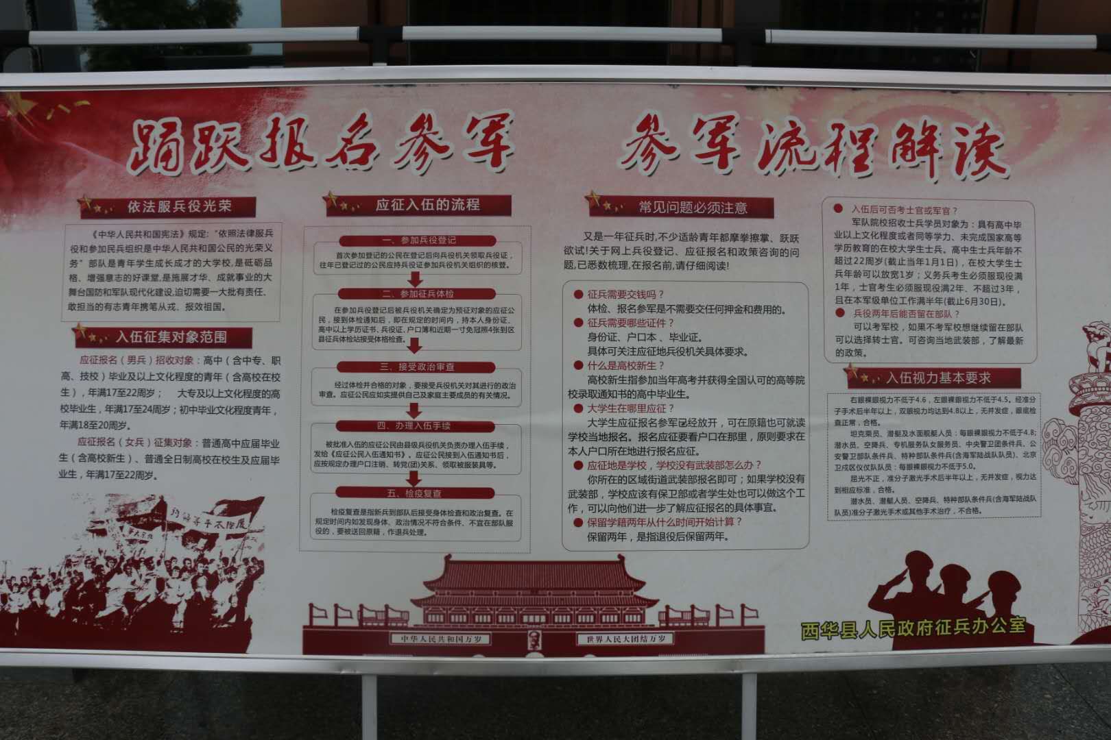 為做好大學(xué)生征兵工作,西華縣人武部認(rèn)真開展了多層次、全方位的宣傳發(fā)動(dòng)??h人武部多次召開黨委會(huì),分析大學(xué)生征兵形勢(shì),研究制定層層宣傳發(fā)動(dòng)方案。扎實(shí)開展大學(xué)生兵員潛力調(diào)查工作,挖掘大學(xué)生兵員潛力,及時(shí)登記造冊(cè)。全縣成立了60支由縣人武部干部職工、鄉(xiāng)鎮(zhèn)專武干部、村民兵干部參加的大學(xué)生征兵宣傳小分隊(duì),分頭對(duì)轄區(qū)內(nèi)在家的各級(jí)各類院校畢業(yè)生和在校生,進(jìn)行挨家挨戶、面對(duì)面的宣傳,把《2020年西華縣大學(xué)生征兵宣傳冊(cè)》發(fā)放到每一名大學(xué)生手中,做到一人不漏。為其算好“經(jīng)濟(jì)帳”、“ 政治帳”、“ 前途帳”。把針對(duì)大學(xué)生青年制定的最新調(diào)整的優(yōu)惠政策宣傳到位,最大限度發(fā)掘大學(xué)生征集潛力。同時(shí),該縣把做深做細(xì)大學(xué)生征兵宣傳報(bào)名工作,作為完成征兵任務(wù)的重要基礎(chǔ),積極轉(zhuǎn)變思路,創(chuàng)新工作方法,靈活運(yùn)用各種宣傳手段,千方百計(jì)增強(qiáng)宣傳發(fā)動(dòng)的針對(duì)性、實(shí)效性。該部除采取散發(fā)傳單、懸掛橫幅、制作板報(bào)、張貼標(biāo)語、現(xiàn)場(chǎng)咨詢等傳統(tǒng)方式外,還充分利用廣播、電視、微信、短信、電子屏等傳媒手段增強(qiáng)宣傳效果,做到廣播電視里有音有像,微信短信電子屏有征兵信息滾動(dòng)發(fā)布,墻報(bào)上有文,橫幅標(biāo)語上有宣傳口號(hào),提高全民政治意識(shí)和國(guó)防觀念,切實(shí)讓大學(xué)生入伍優(yōu)惠政策宣傳不留死角。該部充分利用對(duì)現(xiàn)役軍人家庭逐戶走訪解難、贈(zèng)送懸掛“光榮軍屬”牌匾、敲鑼打鼓送喜報(bào)等活動(dòng),在全社會(huì)大力營(yíng)造“一人參軍、全家光榮”的鮮明導(dǎo)向,讓尊崇軍人的號(hào)召在西華縣落地,讓當(dāng)兵光榮的傳統(tǒng)在群眾心中扎根,從而激勵(lì)大學(xué)生青年積極報(bào)名參軍的報(bào)國(guó)熱情。