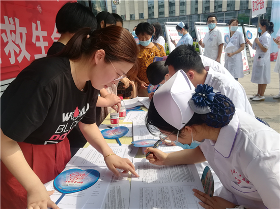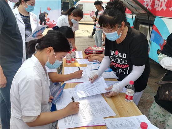 我市今天舉行了6.14世界獻(xiàn)血者日暨無償獻(xiàn)血宣傳月活動(dòng)啟動(dòng)儀式。在活動(dòng)現(xiàn)場(chǎng),廣大市民挽袖捐血,以熱血傳遞愛心,讓世界更健康。