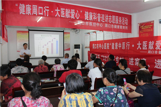 6月11日下午,周口市中心醫(yī)院內(nèi)分泌科主任楊東輝、健康促進(jìn)辦公室主任范桂麗帶領(lǐng)健康巡講志愿服務(wù)隊(duì)來(lái)到慶豐社區(qū),為廣大居民開(kāi)展“糖尿病如何科學(xué)防治”科普講座。
