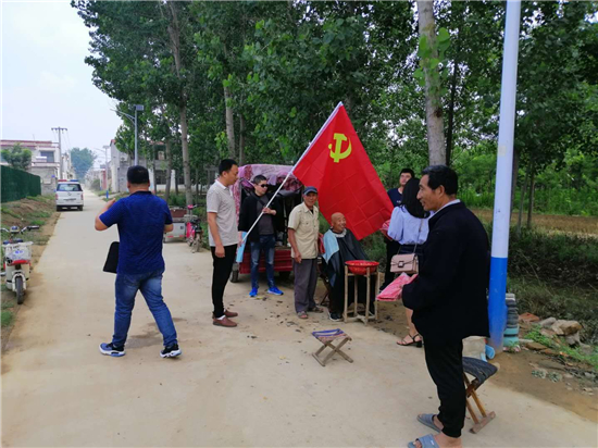 6月19日上午,區(qū)司法局城北司法所黨支部和荷花路司法所黨支部的黨員們來到金海路辦事處黨莊行政村開展法治助脫貧 “主題黨日”活動。
