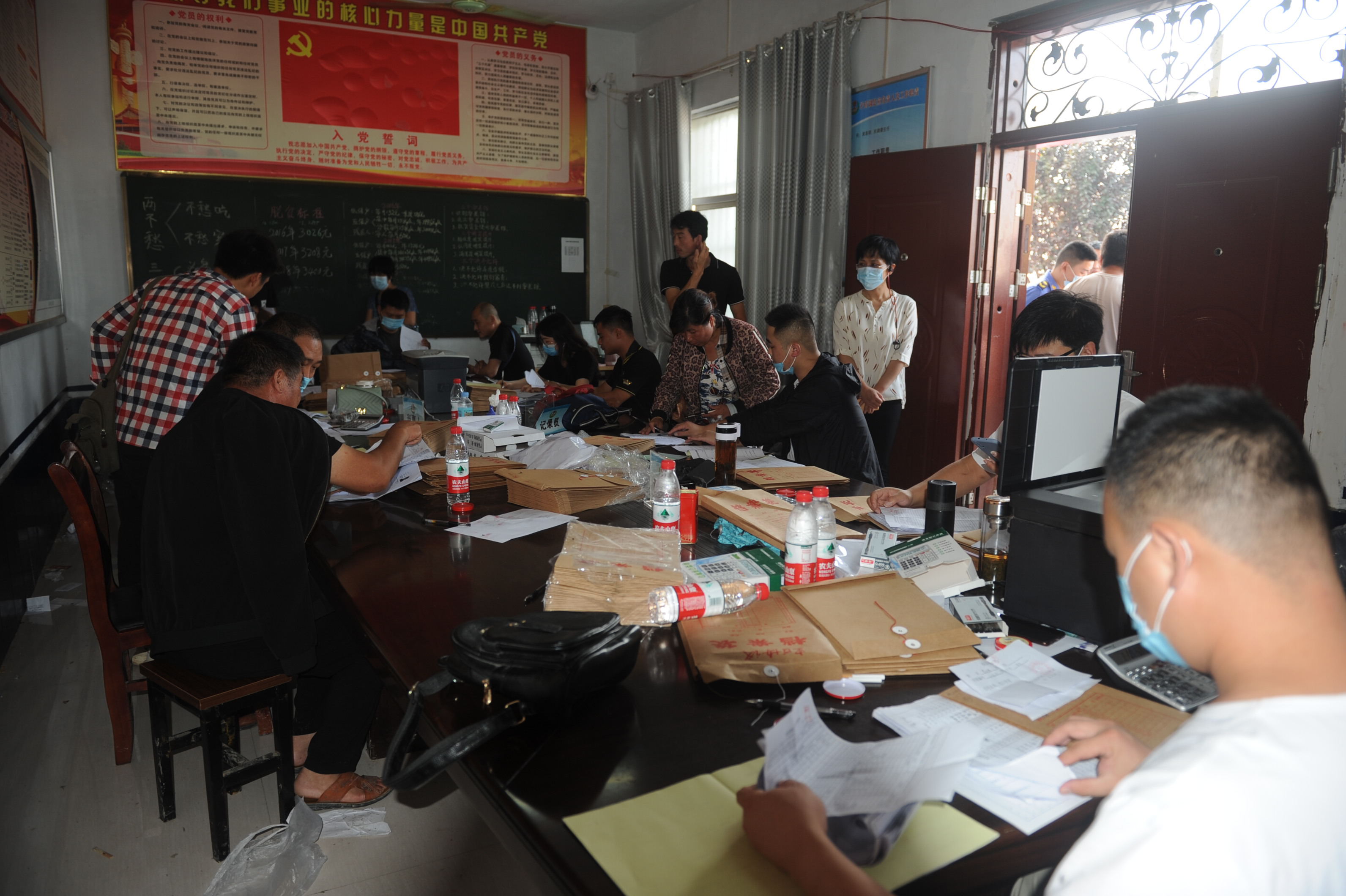 村室內(nèi),工作人員有的在忙著為群眾復印材料,有的在緊張地為群眾簽訂房屋拆除協(xié)議,大家都忙得不可開交。