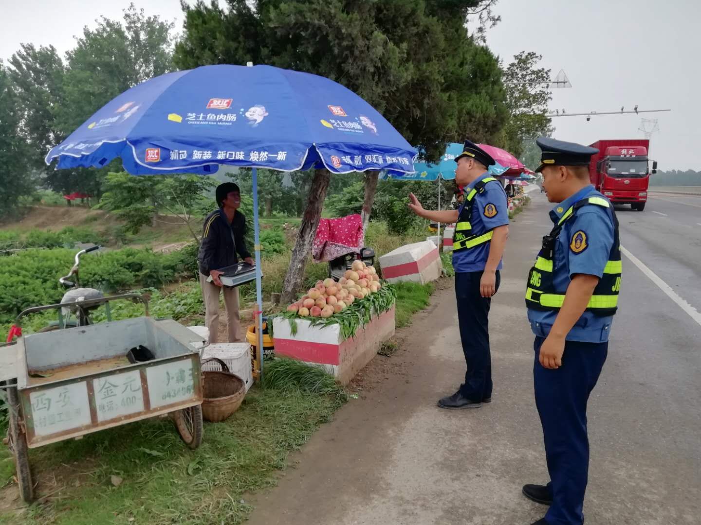 隨著瓜果等農(nóng)產(chǎn)品陸續(xù)上市,龍源路附近很多村民直接把瓜果堆放在公路邊上占道經(jīng)營,給道路交通帶來嚴重的安全隱患。通過勸導(dǎo)、宣傳教育,提高了沿線經(jīng)營戶對違章占用公路擺攤設(shè)點危害性的認識,自覺將攤點撤離公路至安全地帶,確保了沿線公路的安全暢通。