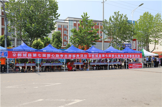 7月7日,全國高考進行時。鄲城縣為大力弘揚“奉獻、友愛、互助、進步”的志愿服務精神,由中共鄲城縣委宣傳部、共青團鄲城縣委聯(lián)合主辦,鄲城縣青年志愿者協(xié)會承辦,鄲城縣農(nóng)信社獨家贊助的愛心助考志愿服務活動在全縣6個考點順利開展,身著紅馬甲的志愿者們成為服務高考的亮麗風景線。