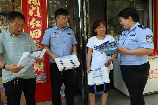 贈(zèng)送手提袋只是該局眾多宣傳手段的一種。活動(dòng)開展以來(lái),554個(gè)警務(wù)工作站的駐村民警、輔警已經(jīng)基本完成了所有家庭的入戶走訪,發(fā)放了反詐傳單50余萬(wàn)份,1671個(gè)“警民一家親”微信群每天推送反詐騙現(xiàn)實(shí)案例、常識(shí),顯示反電詐內(nèi)容的電子屏和標(biāo)語(yǔ)橫幅隨處可見,鄉(xiāng)村大喇叭的霸氣喊話不絕于耳……