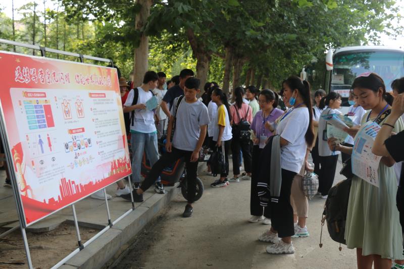 在該縣各標準化高考考點征兵宣傳現(xiàn)場,人頭攢動、熱鬧非凡?!昂媚袃?,來當兵”大紅條幅和“把忠心獻給祖國,把青春獻給軍營”“參軍報國盡義務(wù),熱血青年競風(fēng)采”的大型宣傳牌格外引人注目,內(nèi)容豐富的征兵宣傳展板一字排開,《征兵宣傳手冊》《大學(xué)新生應(yīng)征入伍宣傳單》《征兵政策宣傳解讀手冊》等征兵宣傳資料擺放在咨詢臺上一目了然,吸引了眾多的考生和家長駐足觀看,圍著咨詢臺詢問有關(guān)征兵事宜。