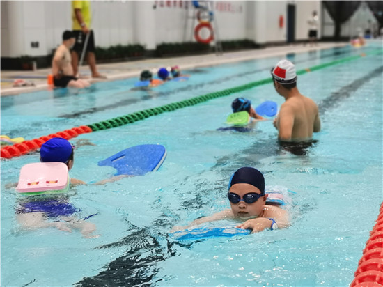 7月9日,不少孩子們在游泳館內(nèi)游泳嬉戲。暑假開始了,孩子們開始了豐富多彩的假期生活,有不少孩子來到游泳館,在碧水中游戈,快樂健身。許多家長認(rèn)為,游泳除了可以讓孩子健身、消暑外,還能提高孩子的自救能力。