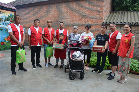 7月12日上午,周口市義工協(xié)會(huì)劉玉英帶領(lǐng)市縣義工志愿者一行10余人冒雨到商水縣平店鄉(xiāng)曾莊村看望慰問(wèn)貧困家庭曾廣忍的新生病兒,送去了奶粉、嬰兒車、衣物等生活用品,送去了社會(huì)慈善機(jī)構(gòu)和愛(ài)心人士的一片關(guān)愛(ài)之情。