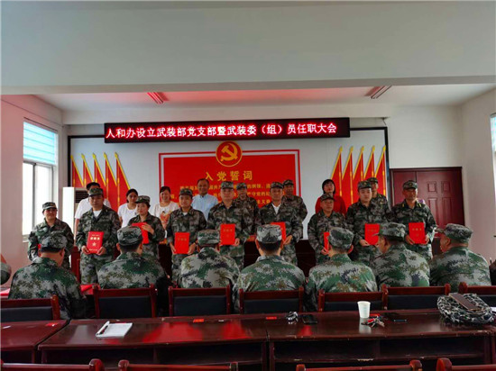 本次大會確定在人和辦武裝部建立1個黨支部,人和辦武裝部長王超任黨支部書記,在轄區(qū)9個社區(qū),每個社區(qū)建立1個3人黨小組,黨小組成員包括在該社區(qū)設(shè)置的1名兼職武裝委員和在該社區(qū)基本單元網(wǎng)格設(shè)置的2名兼職武裝組員。每個黨小組編入人和街道武裝部黨支部,并報區(qū)人武部備案,制定任命證書。