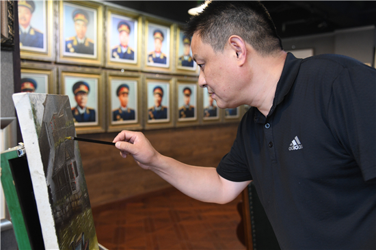 走進(jìn)毗鄰周口市區(qū)的張一油畫工作室,一股墨香迎面撲來。讓人眼前一亮的是畫室四周掛滿的人物肖像,特別是南面墻上的一組開國將帥肖像畫尤為引人注目。將軍們威武雄健,或凌厲或威嚴(yán)的眼神讓人回想起他們那個(gè)戎馬倥傯、戰(zhàn)火紛飛的年代。