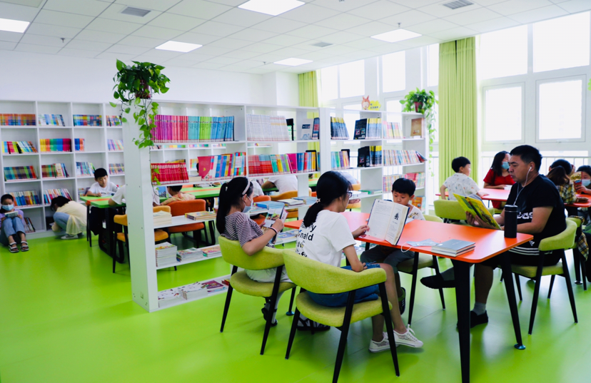“圖書館的閱讀氛圍非常好,孩子們能靜下心來看書,我們在跟孩子互動的同時,也能夠與孩子一起享受閱讀的樂趣?!迸阃⒆拥耐跖块_心地說。