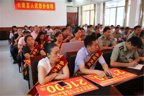 太康縣還隆重舉行了2020年義務(wù)兵家屬優(yōu)待金集中發(fā)放儀式??h委、縣政府高度重視現(xiàn)役軍人權(quán)益保障,7月30日,在縣人武部國防教育中心舉行了2020年義務(wù)兵家屬優(yōu)待金集中發(fā)放儀式,按照義務(wù)兵家屬優(yōu)待金發(fā)放標(biāo)準(zhǔn),將所有優(yōu)待金全部足額發(fā)放到位。前來參加儀式的家屬們披紅帶花,氣氛熱烈,營造了“一人參軍、全家光榮”的濃厚氛圍,進(jìn)一步激發(fā)了廣大青年學(xué)子參軍報(bào)國熱情。