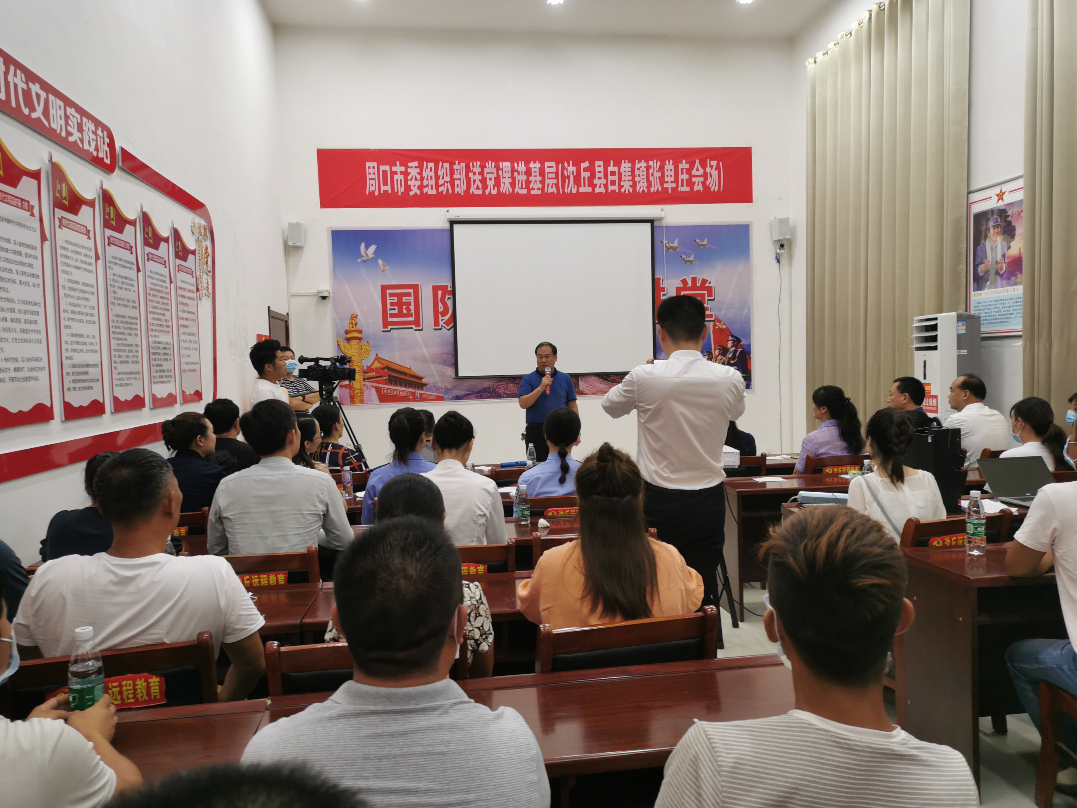“是黨員就要勇于擔(dān)當(dāng),是黨員疫情面前就要敢于挺身而出……”8月4日下午,沈丘縣白集鎮(zhèn)張單莊村委會(huì)會(huì)議上座無虛席, 來自白集鎮(zhèn)政府、張單莊村的120多名黨員干部共同分享著一道“精神大餐”,由周口市委組織部組織的“送黨課下基層”活動(dòng)正在上演。