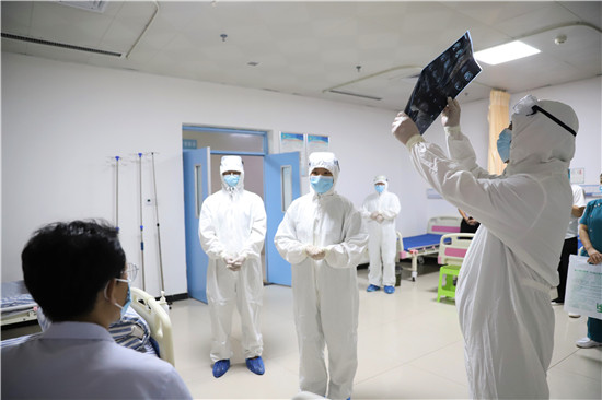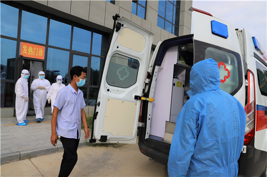 演練中,一名中年男子駕車到港區(qū)醫(yī)院就診,患者自述一周來在外地居住,無發(fā)熱癥狀,近一天來有氣促,活動(dòng)后胸悶、氣促加重,偶有咳嗽。經(jīng)急診科醫(yī)生多次詳細(xì)詢問流行病學(xué)史,發(fā)現(xiàn)患者有隱瞞病史嫌疑(一周前同室居住工友,23日已確診為新冠患者),確定該病員為可疑新冠病毒肺炎患者。立即電話通知科主任及醫(yī)療救治專家組成員會(huì)診,根據(jù)患者主訴和臨床表現(xiàn),專家組分析高度懷疑病人為可疑感染新冠病毒病員。立即轉(zhuǎn)運(yùn)至隔離留觀室,并通知傳染病管理小組將疫情上報(bào)至市疾病預(yù)防控制中心,并協(xié)助對(duì)該病員進(jìn)行流行病學(xué)調(diào)查、轉(zhuǎn)運(yùn)及指導(dǎo)消毒、滅菌等工作。經(jīng)市級(jí)專家會(huì)診后,符合疑似病例,按照區(qū)防控指揮部規(guī)定,采用負(fù)壓轉(zhuǎn)運(yùn)車轉(zhuǎn)運(yùn)定點(diǎn)醫(yī)院治療。