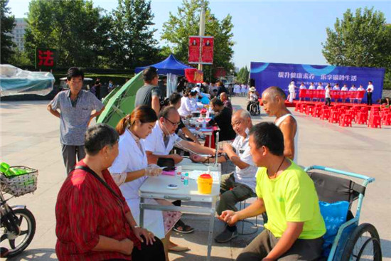 儀式現(xiàn)場,多家單位負(fù)責(zé)人宣讀了“提升健康素養(yǎng) 樂享銀齡生活”倡議書。儀式結(jié)束后,現(xiàn)場舉行大型義診、健康咨詢、文藝表演等活動。市、區(qū)醫(yī)療單位設(shè)立13個咨詢服務(wù)臺,圍繞“提升健康素養(yǎng) 樂享銀齡生活”活動主題,現(xiàn)場普及老年健康知識,通過擺放健康知識展版、發(fā)放健康宣傳折頁、提供健康咨詢和現(xiàn)場義診服務(wù)等形式,為老年人提供量血壓、測血糖、測視力、等健康服務(wù)。針對常態(tài)化疫情防控中對老年人的生活照顧、健康管理、醫(yī)養(yǎng)結(jié)合、慢性病預(yù)防等內(nèi)容,結(jié)合老年人特點,圍繞營養(yǎng)膳食、運動健康、心理健康、合理用藥等方面展開科普宣傳指導(dǎo),普及老年健康科學(xué)知識和老年健康相關(guān)政策。叮囑老人做好居家衛(wèi)生,出門戴口罩,做好個人防護,并針對老年人常見的高血壓、糖尿病、冠心病等,給予健康評估和健康指導(dǎo),讓廣大老年人切身感受到社會的關(guān)懷和溫暖,提高了老年人的健康素養(yǎng),收到了良好的社會效果。