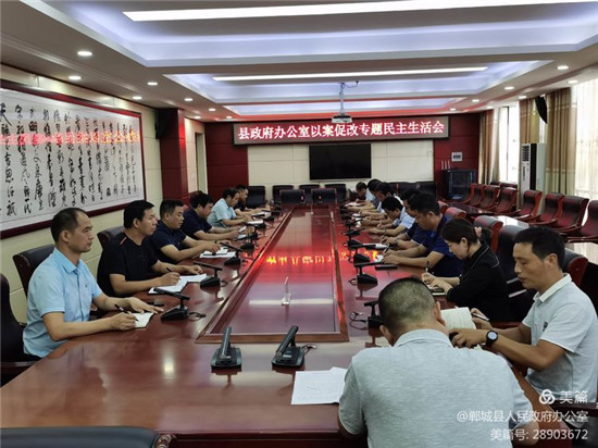 9月1日下午,鄲城縣政府辦公室黨總支部書記、主任賈培民主持召開以案促改專題民主生活會,政府辦班子成員,科級以上干部和駐政府辦紀(jì)檢組組長李振華、副組長胡宇帆參加會議。