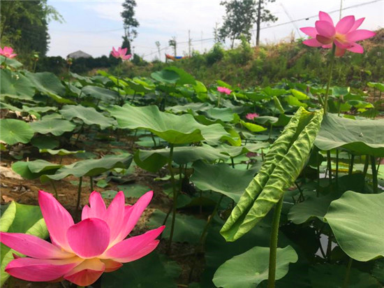該鎮(zhèn)完樓村是袁征口中的4.0版鄉(xiāng)村振興的最具代表性的村落之一。完樓行政村轄完樓、完天齊廟、黃盆窯、代洼、代小莊、許莊、吳菜園、付樓、劉莊9個(gè)自然村,耕地面積3331畝,總?cè)丝?100余人。2018年那次村委換屆,常年經(jīng)營(yíng)鋼材生意的許天勇被大伙推選為村支部書(shū)記,成了該村的致富領(lǐng)頭雁。上任伊始,許天勇充分利用水域面積大的優(yōu)勢(shì),發(fā)展鄉(xiāng)村旅游經(jīng)濟(jì),把整理出來(lái)的水域種上了荷花,放上了魚(yú)苗,在村里還建起了四橦民宿建筑,在廣場(chǎng)邊村里統(tǒng)一管理的一處民宿內(nèi)興辦了特色餐飲,讓來(lái)這里垂釣的人有得玩、有得吃、還有得住。