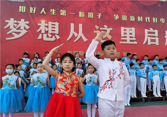 9月7日早上,周口市文昌小學(xué)的學(xué)生有序排隊(duì)測(cè)量體溫后進(jìn)入學(xué)校。據(jù)文昌小學(xué)校長(zhǎng)介紹,全市中小學(xué)實(shí)行錯(cuò)峰開(kāi)學(xué)。今天是小學(xué)開(kāi)學(xué)時(shí)間,文昌小學(xué)學(xué)生每個(gè)年級(jí)實(shí)行錯(cuò)時(shí)上下學(xué),學(xué)生入校要測(cè)體溫,并為一年級(jí)新生舉辦了主題為“夢(mèng)從這里啟航”的“迎新儀式”。