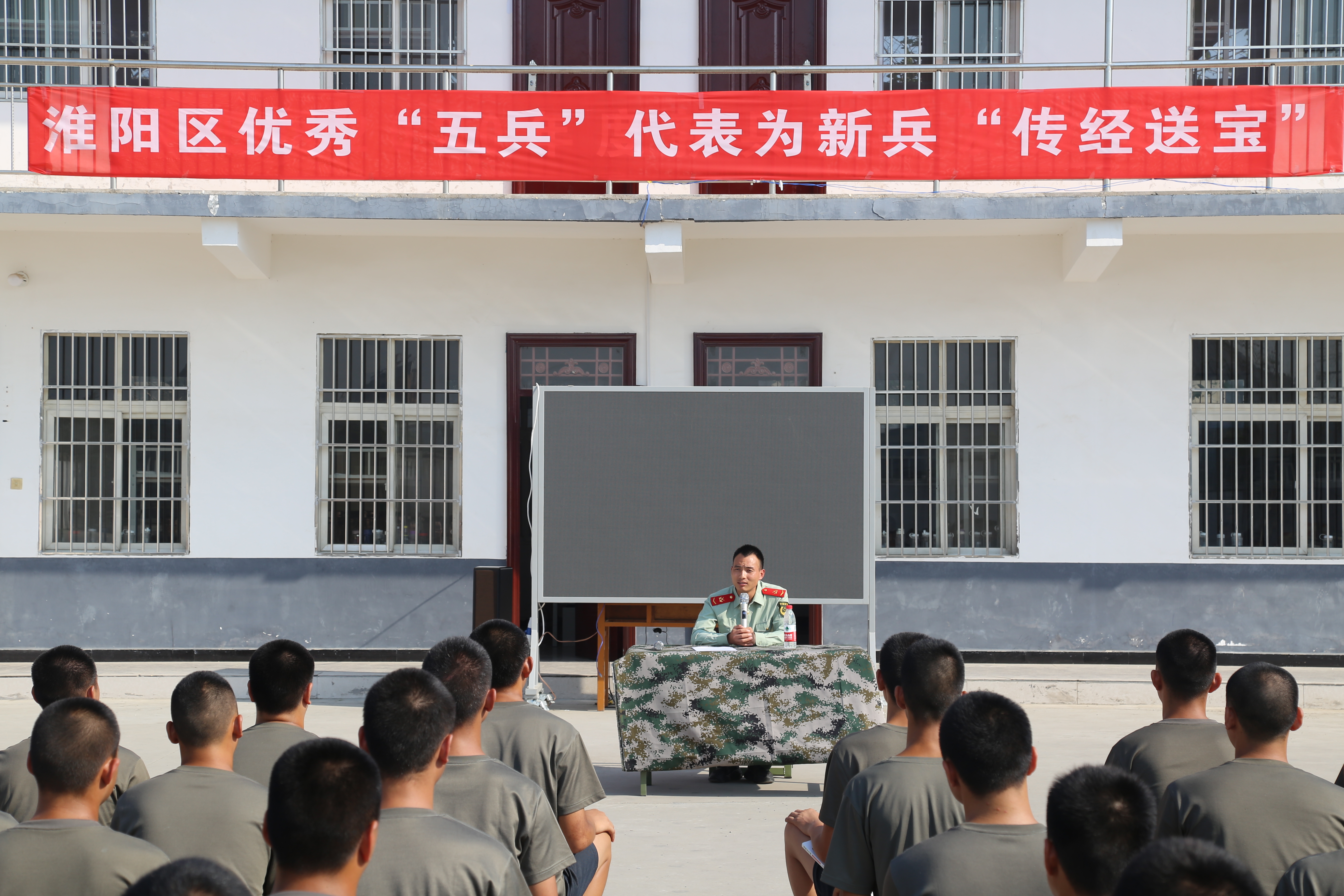 為了進(jìn)一步激發(fā)新兵的工作訓(xùn)練熱情,堅(jiān)定新戰(zhàn)士立足軍營,獻(xiàn)身國防的信念。9月8日,在年度新兵即將起運(yùn)之際,淮陽區(qū)人武部組織優(yōu)秀“五兵”代表(參戰(zhàn)老兵、現(xiàn)役士兵、退役士兵)為新兵“傳經(jīng)送寶”活動(dòng),300余名新兵一起聆聽優(yōu)秀“五兵”代表精彩講課。