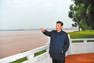 2019年9月17日下午,習(xí)近平在鄭州黃河國家地質(zhì)公園,眺望黃河鄭州段。新華社記者 謝環(huán)馳 攝