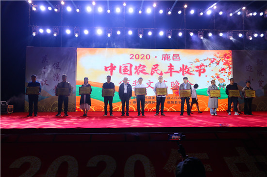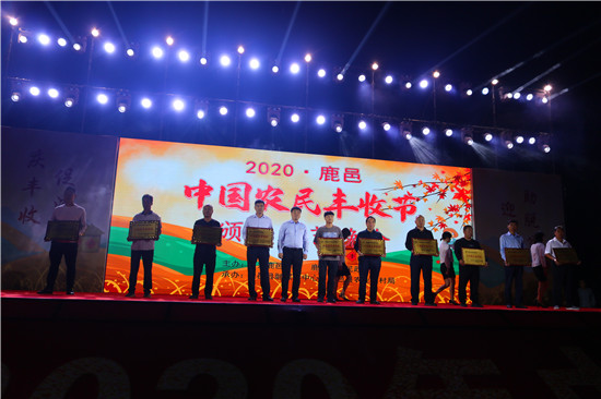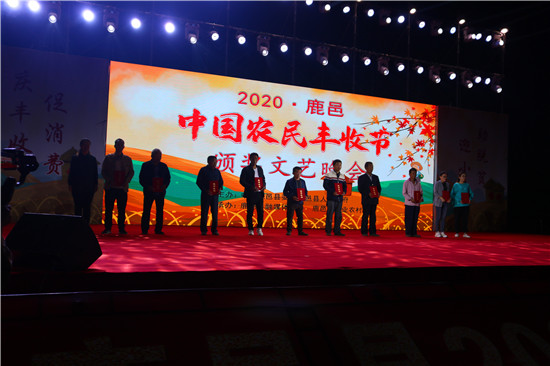 9月22日晚,由中共鹿邑縣委、鹿邑縣人民政府主辦的2020年鹿邑縣農(nóng)民豐收節(jié)文藝晚會(huì)在鹿邑縣文化中心廣場(chǎng)舉辦。晚會(huì)現(xiàn)場(chǎng)頒布了鹿邑縣“十佳家庭農(nóng)場(chǎng)”“十佳農(nóng)民合作社”“十佳特色農(nóng)產(chǎn)品品牌”“十佳返鄉(xiāng)創(chuàng)業(yè)脫貧致富帶頭人”“十佳脫貧致富先進(jìn)個(gè)人”五項(xiàng)獎(jiǎng)項(xiàng),40名新型農(nóng)民(農(nóng)場(chǎng)、合作社)代表和10個(gè)特色農(nóng)產(chǎn)品品牌獲殊榮,他們用行動(dòng)和產(chǎn)品充分展示了全縣現(xiàn)代農(nóng)業(yè)在過(guò)去一年中取得的輝煌成果。縣領(lǐng)導(dǎo)雷申、楊所超、侯自峰、王曉征、張國(guó)慶、肖西國(guó)等出席豐收節(jié)晚會(huì),并為獲獎(jiǎng)?wù)哳C發(fā)榮譽(yù)證書(shū)和獎(jiǎng)牌。
