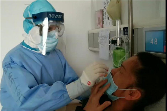 眾所周知,采集咽拭子、鼻咽拭子標(biāo)本是非常危險(xiǎn)的易感染密切接觸行為,同時(shí)對患者來說也非常不適。在病區(qū)采集時(shí),胡奔奔總是動(dòng)作輕柔,邊采集邊輕聲安撫患者,緩解患者緊張情緒。而不少患者因?yàn)楦袘延诤急嫉南ば恼疹櫍偸菑?qiáng)行壓抑著自己的癥狀,盡量不發(fā)出咳嗽,避免對胡奔奔造成更大危險(xiǎn)。
