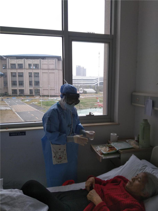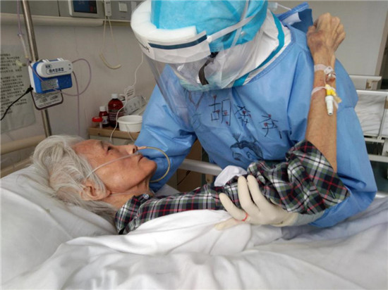 今年74歲的李秀紅,不僅感染新冠肺炎,而且罹患老年癡呆,生活需要時(shí)時(shí)照顧,而且剛?cè)朐簳r(shí),對陌生環(huán)境的恐懼造成她心情壓抑,天天不說話,時(shí)不時(shí)落淚。為了讓老人放下心理包袱,胡奔奔在進(jìn)行哄喂吃飯、服藥等正常護(hù)理之余,經(jīng)常陪老人聊天、唱歌,后來老人情緒明顯好轉(zhuǎn),還主動(dòng)與胡奔奔一起扭起了舞蹈。后來,老人康復(fù)出院時(shí),雖然無言 卻一直緊緊抓著胡奔奔的手久久不愿放開。胡奔奔說,那一刻,她落淚了,但心里確實(shí)說不出的高興。