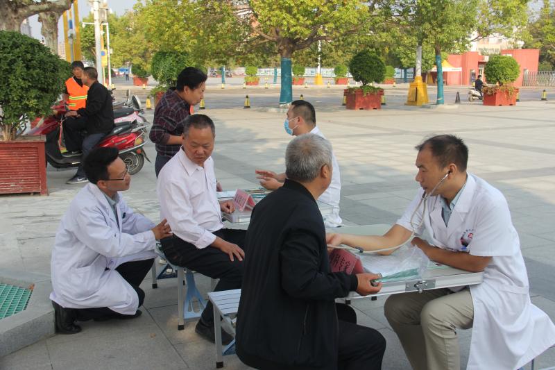 義診活動現(xiàn)場,通過懸掛主題宣傳橫幅、擺放健康知識宣傳展板、設(shè)置義診咨詢服務(wù)臺、發(fā)放健康促進(jìn)宣傳折頁等方式為群眾進(jìn)行健康知識宣教。前來咨詢就診的群眾絡(luò)繹不絕,醫(yī)務(wù)人員熱情地為群眾提供免費測量血壓、血糖等服務(wù),耐心細(xì)致地解答群眾健康咨詢并給予診療建議,提醒平時多多加強鍛煉,注意健康飲食。