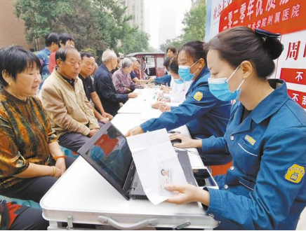 為滿足社區(qū)居民基本醫(yī)療衛(wèi)生服務需求,文昌社區(qū)衛(wèi)生服務中心開展了“優(yōu)質(zhì)服務基層行”活動,組織醫(yī)務人員走進小區(qū),為居民進行免費健康體檢,并建立健康檔案。圖為9月25日,醫(yī)務人員在建業(yè)小區(qū)為居民測量血壓,并建立健康檔案。