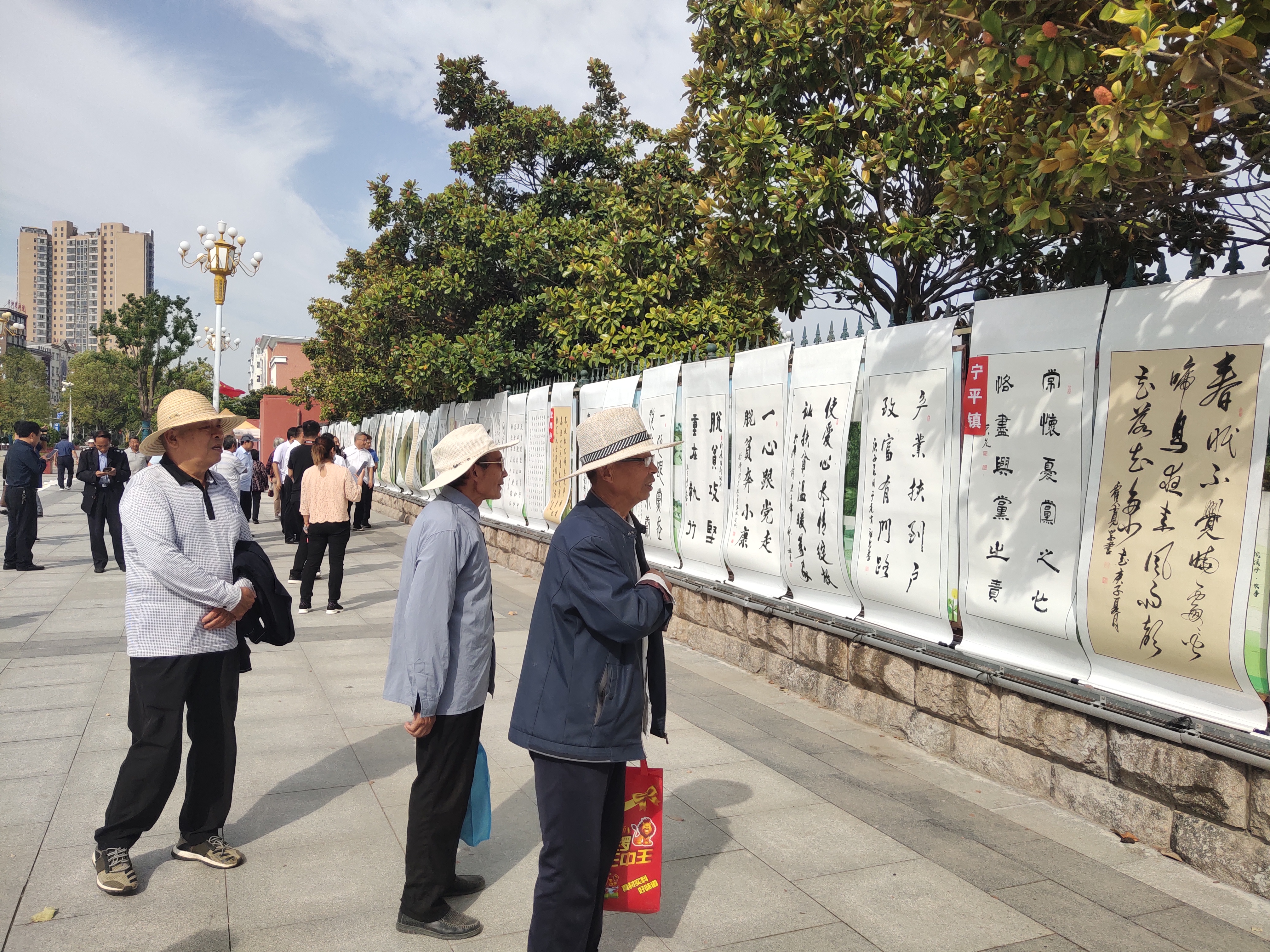 此次書法展以迎“國慶”,歌頌該縣決戰(zhàn)脫貧攻堅、決勝全面小康取得的成效為主題,從23個鄉(xiāng)鎮(zhèn)辦266幅參賽作品中精選出119幅進行展出,這些作品大多出自全縣農(nóng)民群眾之手,楷行隸篆,諸體皆備,流派紛呈,各具特色,代表了該縣當代農(nóng)民書法隊伍的較高水平,彰顯了“中國書法之鄉(xiāng)”的綜合實力。此次書法展活動的舉辦不僅進一步堅定文化自信,傳承中華優(yōu)秀傳統(tǒng)文化,繁榮全縣書法藝術,更是為廣大農(nóng)民書法愛好者提供了一個交流學習的平臺,他們用書法描繪了祖國的大好河山,歌頌了中國共產(chǎn)黨帶領全國人民取得的豐功偉績,同時也為祖國的生日送上濃濃的祝福。②9