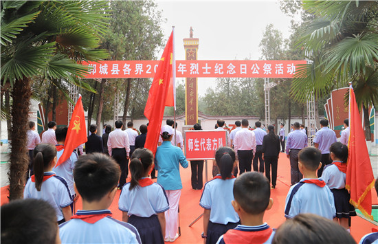 鄲城大地存浩氣,蒼松翠柏祭英烈。9月30日,鄲城縣在烈士陵園舉行2020年烈士紀念日公祭活動,市人大常委會副主任、鄲城縣委書記羅文閣,縣長李全林,縣人大常委會主任李建軍,縣政協(xié)主席王偉等縣四個班子領導,全縣副處級以上領導干部,縣直各單位負責人,23個鄉(xiāng)鎮(zhèn)辦負責人,退役軍人代表、師生代表和社會各界人士,一同祭奠革命先烈,激勵全縣上下不忘初心、牢記使命,為鄲城縣高質量發(fā)展而不懈奮斗。