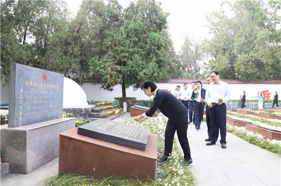 羅文閣緩步上前,代表縣四個班子仔細整理緞帶。全體人員面向烈士紀念碑行三鞠躬禮,并深情瞻仰烈士陵園,向英雄烈士獻上鮮花,表達對烈士的無限敬仰和哀思。①15