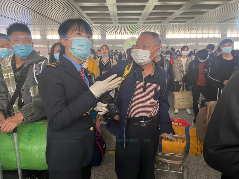 今年30多歲的王琪就是其中一名客運(yùn)值班員。她家在濮陽(yáng)市,今年6月份從高鐵許昌北站調(diào)到高鐵周口東站工作,她的主要工作是在旅客進(jìn)入候車(chē)廳后,引導(dǎo)旅客有序排隊(duì)進(jìn)入站臺(tái),調(diào)配崗位人員,遇到旅客救助等突發(fā)狀況,及時(shí)處置。