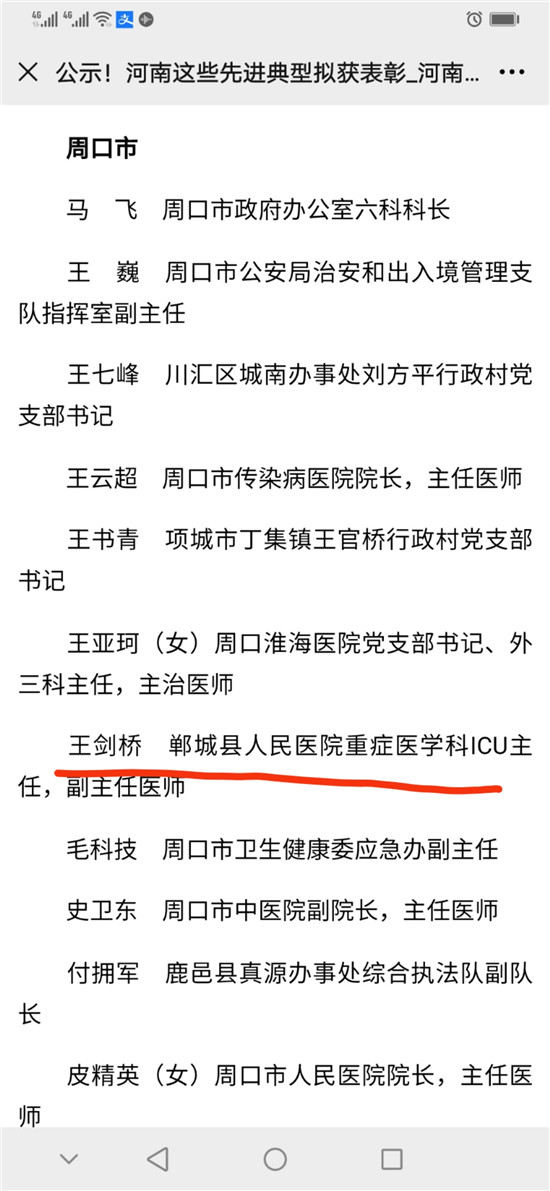 10月10日,河南省委、省政府表彰了一批抗擊新冠肺炎疫情先進(jìn)個(gè)人、河南省抗擊新冠肺炎疫情先進(jìn)集體、河南省優(yōu)秀共產(chǎn)黨員、河南省先進(jìn)基層黨組織。其中,鄲城縣副縣長(zhǎng)肖煒,縣第二人民醫(yī)院援鄂醫(yī)生、主治醫(yī)師仵福全,縣人民醫(yī)院重癥醫(yī)學(xué)科ICU主任、副主任醫(yī)師王劍橋3位同志,被評(píng)為河南省抗擊新冠肺炎疫情先進(jìn)個(gè)人。
