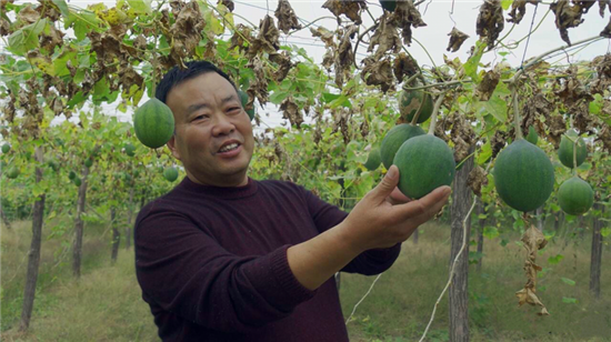 “瓜蔞,又叫吊瓜、野葫蘆,多年生藤本植物,塊根圓柱狀,富含淀粉。它渾身是寶,果子能入藥,也能加工食用?!苯眨卩惓强h寧平鎮(zhèn)瓜簍種植基地,寧平鎮(zhèn)黨委書(shū)記徐汝敏看著滿眼豐收景象的瓜簍,臉上滿是笑容。