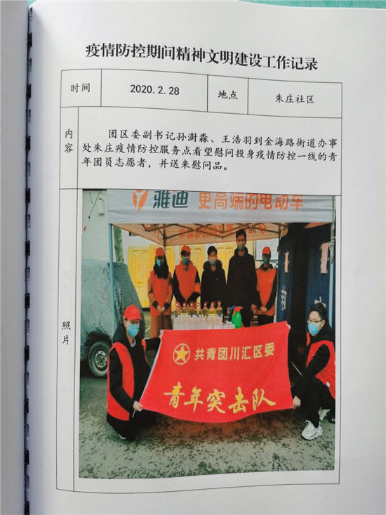 規(guī)范統(tǒng)一。朱莊社區(qū)創(chuàng)文檔案資料主要包括疫情防控、綜合文化服務(wù)、志愿者服務(wù)、黨員教育、普法教育等內(nèi)容,共12本。在格式方面,對字體、字號、圖片排版、數(shù)字和標(biāo)點(diǎn)符號使用等進(jìn)行規(guī)范,做到風(fēng)格統(tǒng)一。在活動記錄方面,分為活動方案制定、活動圖片、活動小結(jié)等內(nèi)容,按照統(tǒng)一格式匯總整理,手寫記錄與彩色照片搭配,使活動記錄清楚、生動、明了。在資料裝訂方面,采用統(tǒng)一封面活頁裝訂。