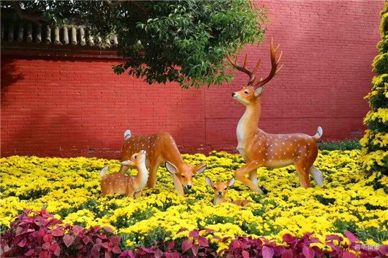 會上,相關負責人對當前菊展的布展情況進行了通報。截至10月17日,耗時近半個月的第三屆重陽菊展布展工作已經結束,布展面積約24000平方米,總計約40萬盆的金菊已全部布展到位。同時,設置200個景觀造型,各類觀賞菊150余種,大中小各類精品菊花3000余盆,等待游客的檢閱。