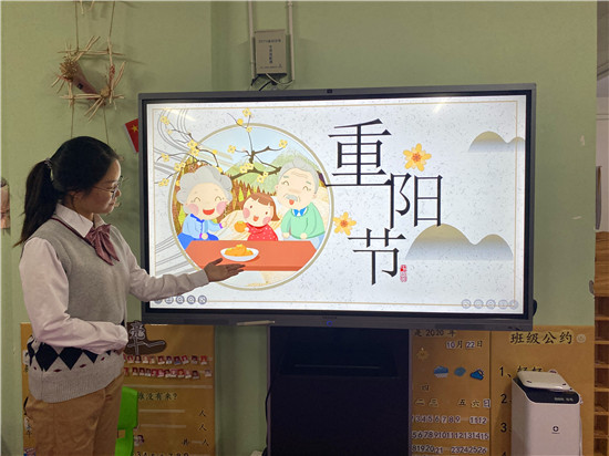 在幼兒園班級活動中,教師通過圖片和視頻等幼兒喜聞樂見的形式,讓幼兒了解重陽節(jié)的習俗,明白了重陽節(jié)的意義。孩子們還用彩紙、水彩等為爺爺奶奶制作了賀卡和禮物,表達自己對老人的愛。