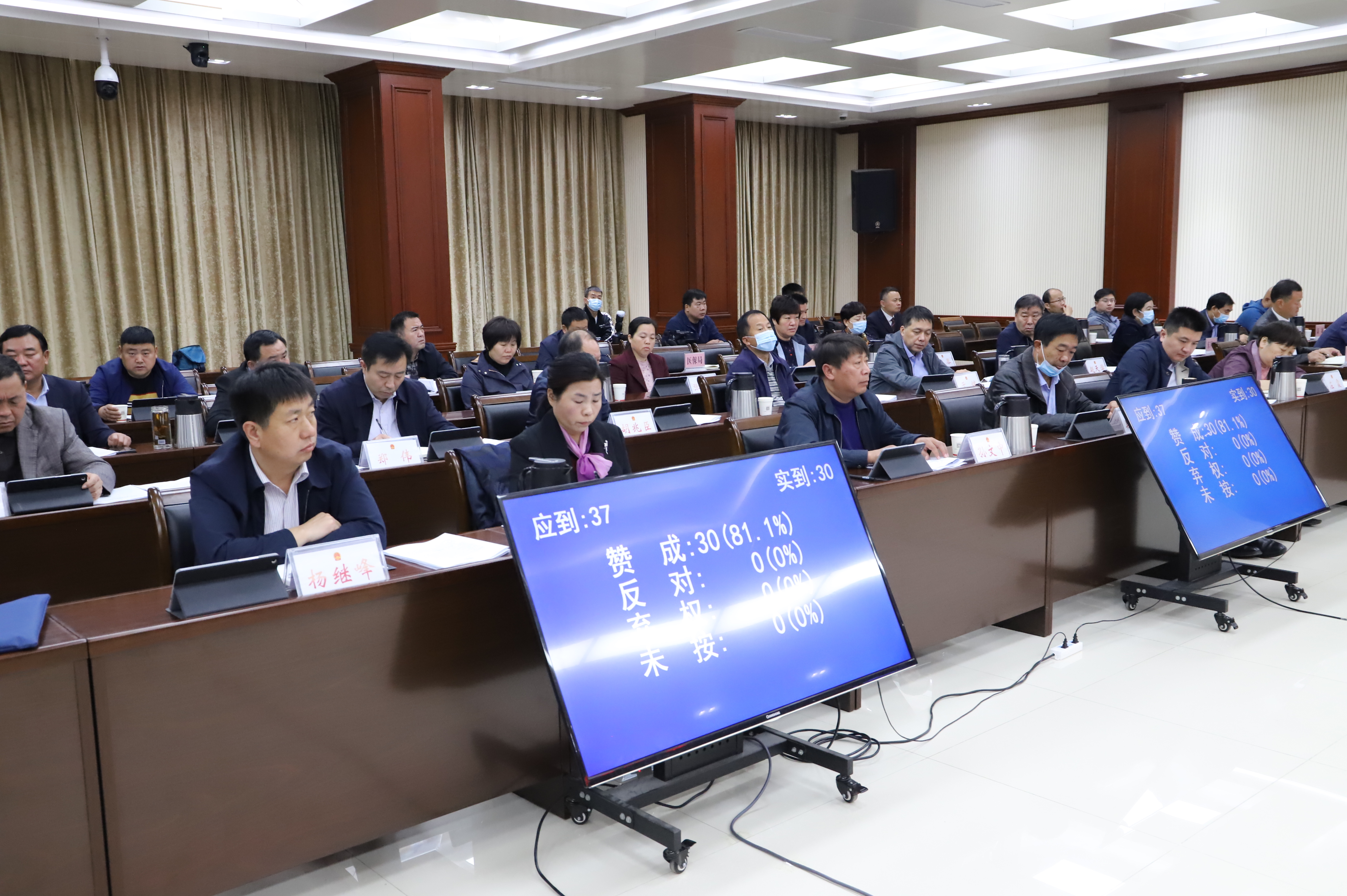 縣十四屆人大常委會(huì)應(yīng)到組成人員37名,出席會(huì)議30名,缺席7名,符合法定人數(shù)。