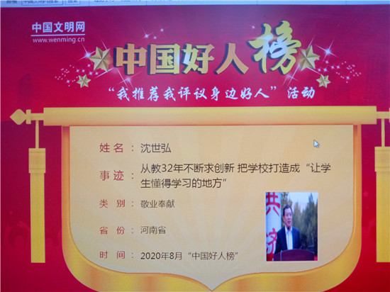 日前,中國(guó)文明網(wǎng)公布今年8月、9月中國(guó)好人評(píng)選結(jié)果:太康縣第一高級(jí)中學(xué)黨委書(shū)記、校長(zhǎng)沈世弘從教32年不斷求創(chuàng)新,榮登8月敬業(yè)奉獻(xiàn)類“中國(guó)好人榜”;太康縣平安養(yǎng)殖專業(yè)合作社理事長(zhǎng)王桂芳8年捐款捐物百余萬(wàn)元幫助困難群眾,榮登9月“中國(guó)好人榜”。至此,太康縣中國(guó)好人上榜人數(shù)達(dá)66人,位居全國(guó)縣級(jí)市首位。