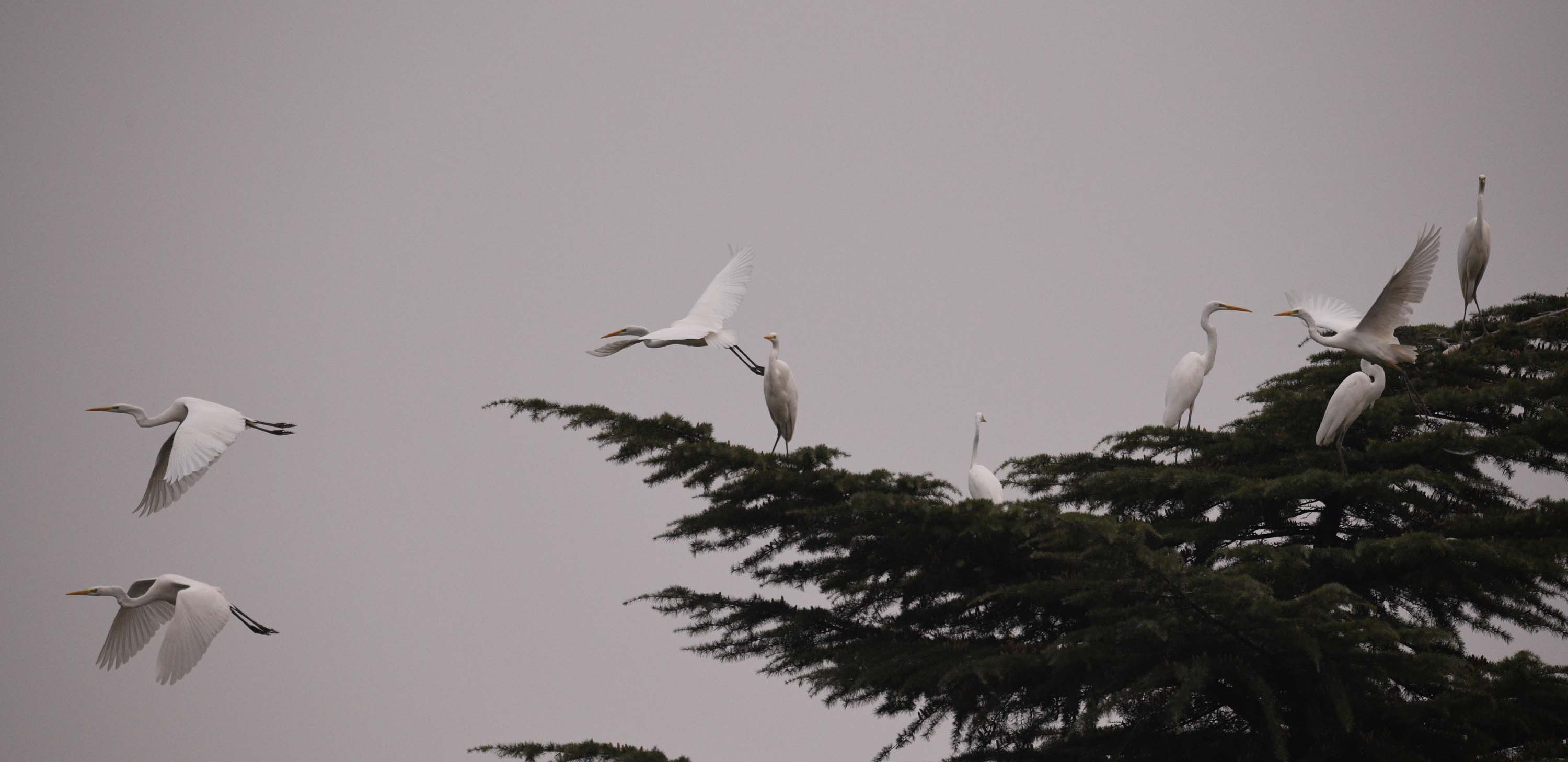 近日,市區(qū)漢陽路沙潁河大閘的中心島林間,飛來近百只白鷺。這里幽靜舒適的環(huán)境和河里豐富的魚蝦,滿足它們棲息和生活。它們面對行人,不驚不詫,時(shí)而盤旋嬉戲,時(shí)而捉魚果腹。人鳥和諧相處,構(gòu)成美麗的生態(tài)風(fēng)情。②9
