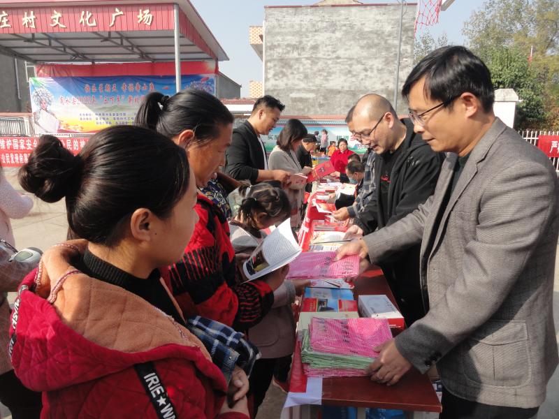 為紀(jì)念《反間諜法》頒布實(shí)施6周年,商水縣委政法委、縣委國(guó)安辦等單位聯(lián)合開(kāi)展普法教育進(jìn)鄉(xiāng)村活動(dòng),通過(guò)發(fā)放宣傳資料、展示宣傳版面、現(xiàn)場(chǎng)講解等形式對(duì)群眾進(jìn)行國(guó)安教育和法治教育。圖為11月1日,工作人員在活動(dòng)現(xiàn)場(chǎng)向村民發(fā)放宣傳資料。