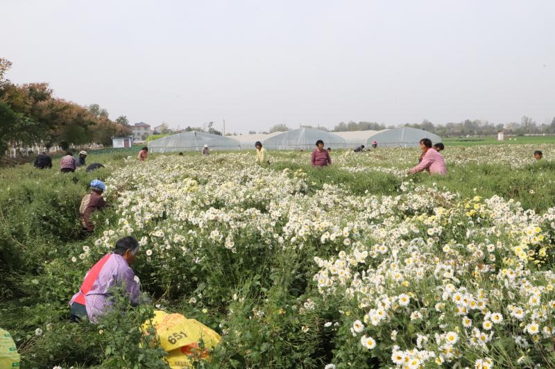 原來,菊花田的老板叫晉振中,于2018年從全縣脫貧攻堅種植信息渠道得知種菊花能致富,銷售的末端是安徽亳州的藥材市場和一些花茶商家。特別是種植方式和平原種植紅薯一樣,把田地打成壟,栽苗、施肥、澆水、除草,9月份采摘一次、11月份采摘一次,剩下的菊花秸稈粉碎到田間作為肥料,還能種植晚小麥,十分方便。于是,他通過鎮(zhèn)村兩級黨員干部協(xié)助流轉(zhuǎn)了100畝土地,2019年就掙了20多萬元。由于晉菜園村是貧困村,在他的菊花田務(wù)工的勞動力大多是貧困戶,能帶動近百戶貧困戶脫貧致富,晉振中欣慰地覺得自己為脫貧攻堅做了一份大貢獻。