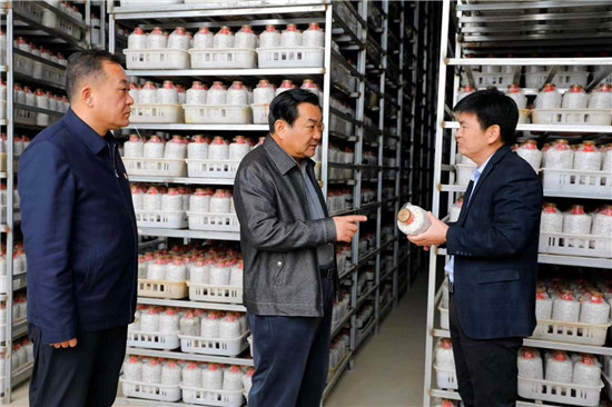 在羅古洞行政村預(yù)脫貧戶許廣東家中,王國璽聽取了該戶的幫扶情況匯報,詳細詢問許廣東政策落實情況,對該戶采取的針對性幫扶措給予了肯定。在華瑞農(nóng)牧食用菌基地,王國璽參觀了該基地產(chǎn)品展示廳、直播間,了解企業(yè)生產(chǎn)、擴建情況,夸贊該企業(yè)為全縣特色食用菌種植帶好了頭,起到了很好的示范帶動作用,鼓勵該企業(yè)要利用好網(wǎng)絡(luò)直播平臺,拓寬產(chǎn)品銷路,增加企業(yè)效益,帶動更多群眾受益。在君趙食用菌基地,王國璽實地了解該企業(yè)菌種制作、生產(chǎn)流程,并對菌包生產(chǎn)、加工過程提出了改進建議。