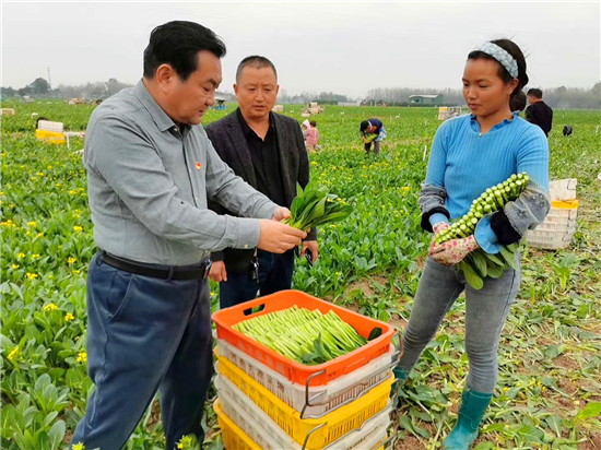 在張集鎮(zhèn)景鴻蔬菜種植基地,王國璽與正在干活的群眾親切交談,進菜地、看長勢、問產(chǎn)量,詳細了解產(chǎn)業(yè)規(guī)劃建設(shè)、政策落實、發(fā)展規(guī)模、運營模式、產(chǎn)品銷路、帶貧成效等具體做法和經(jīng)驗。王國璽指出,在疫情防控常態(tài)化下,鄉(xiāng)賢有效利用資本市場,與家鄉(xiāng)勞動力資源、土地資源有效銜接,發(fā)揮產(chǎn)品優(yōu)勢,增加群眾收入,鞏固了脫貧成果,為鄉(xiāng)村振興打下了堅實基礎(chǔ),要做好宣傳推廣和經(jīng)驗總結(jié)。
