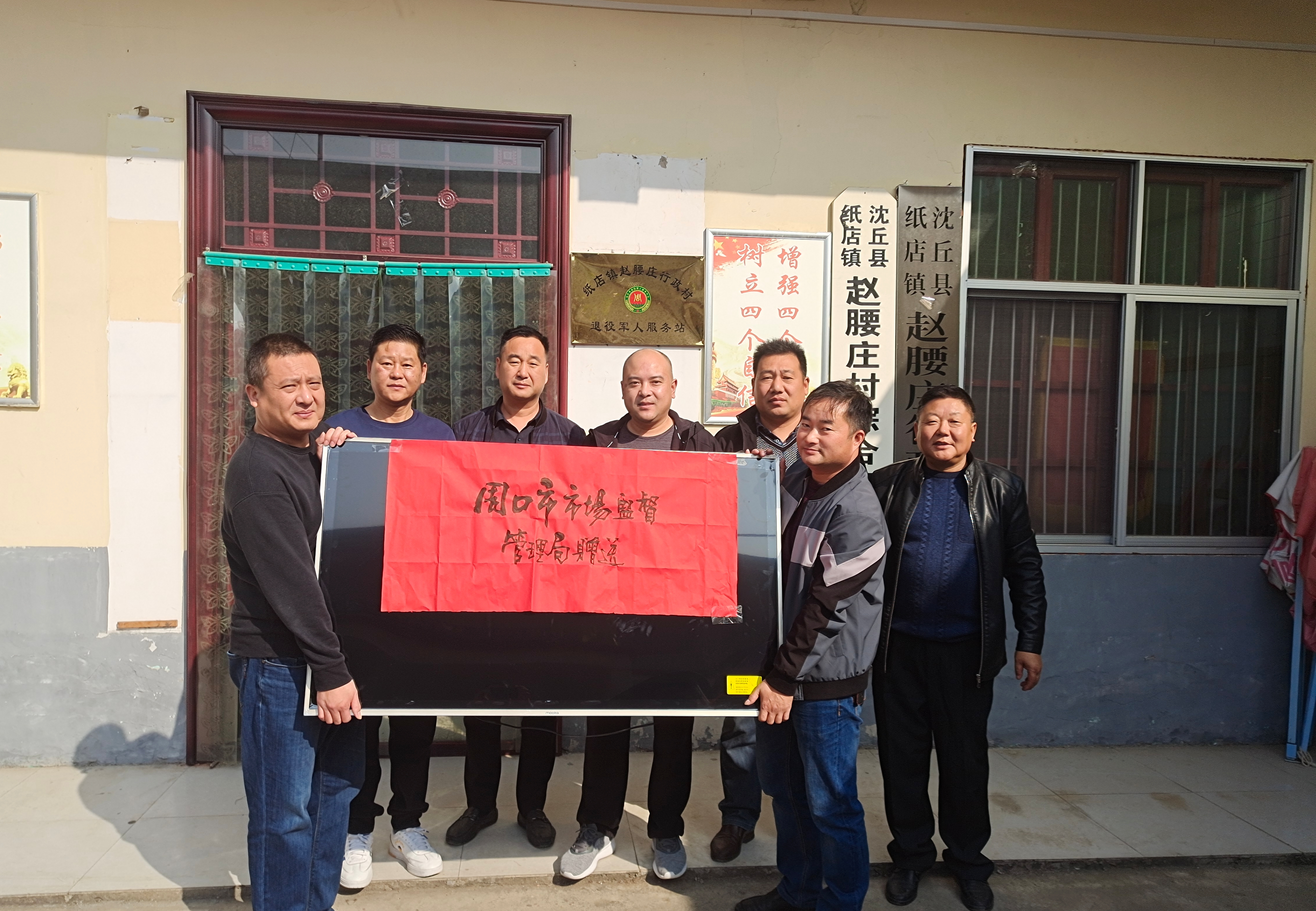 11月6日,市市場監(jiān)督管理局副局長遲恒偉帶領(lǐng)老干部支部、華潤藥業(yè)支部一行三人到駐村點沈丘縣紙店鎮(zhèn)趙腰莊行政村傳達學習上級會議精神、贈送電視機暨開展扶貧日幫扶活動。